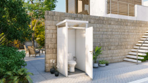 המחסן כולל חלונות סקיילייט מזכוכית מחוסמת, דלת איכותית עם מנעול צילינדר ורצפה פנימית מוגבהת