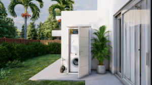 המחסן כולל חלונות סקיילייט מזכוכית מחוסמת, דלת איכותית עם מנעול צילינדר ורצפה פנימית מוגבהת