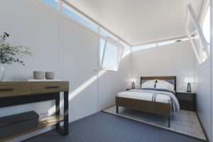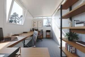 המחסן כולל חלונות סקיילייט מזכוכית מחוסמת, דלת איכותית עם מנעול צילינדר ורצפה פנימית מוגבהת